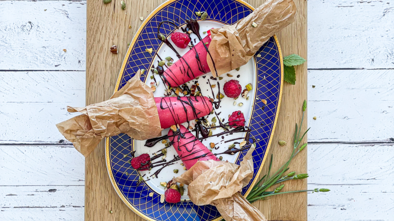 Sladoled od sjemenki bundeve i malina s čokoladnim posipom