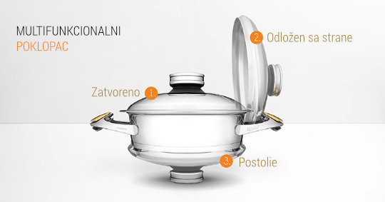 - Pametan i praktičan dizajn, omogučuje prisloniti poklopac na ručke posude