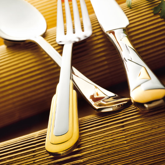 Zepter pribor za jelo izrađen je od čelika CrNi 18/10, u četiri verzije i svaki dio poliranog seta odlikuje svojim blistavim sjajem. U zadnjoj fazi na predmete se nanosi sloj izuzetno tvrdog srebra i zlata (24 ct finog zlata i 999 finog srebra debljine do 40 mikrona).